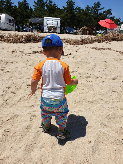 엉덩이까지 까고 해변가를 열심히 돌아다니는 둘째녀석.